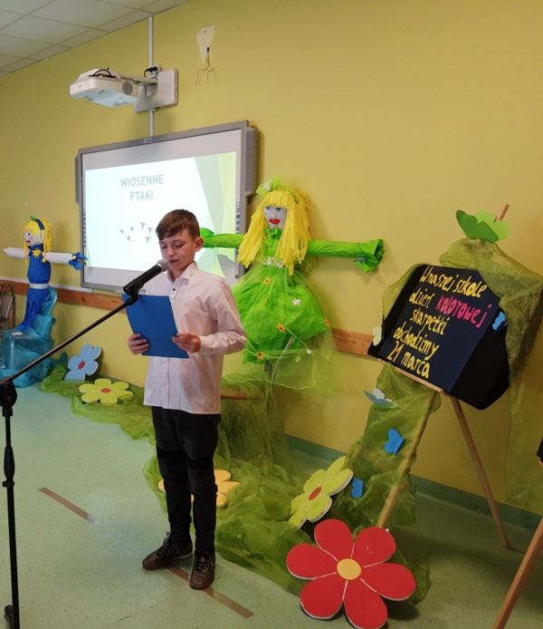 Uczniowie obejrzeli i wysłuchali prezentacji na temat wiosennych zwiastunów, obrzędów związanych z żegnaniem zimy. Pożegnali Marzannę piosenką wykonaną przez uczniów z Oddziału Przedszkolnego i klasy 2-3 lekko. Poznali wiosenne kwiaty, ptaki i ich odgłosy oraz dowiedzieli się jak wiosną można spędzać czas na świeżym powietrzu.