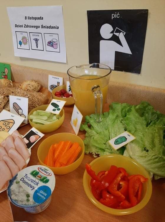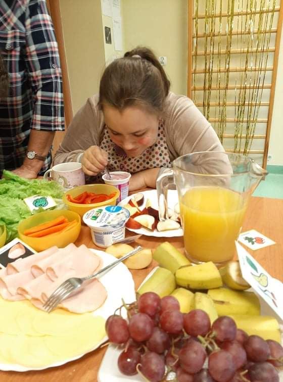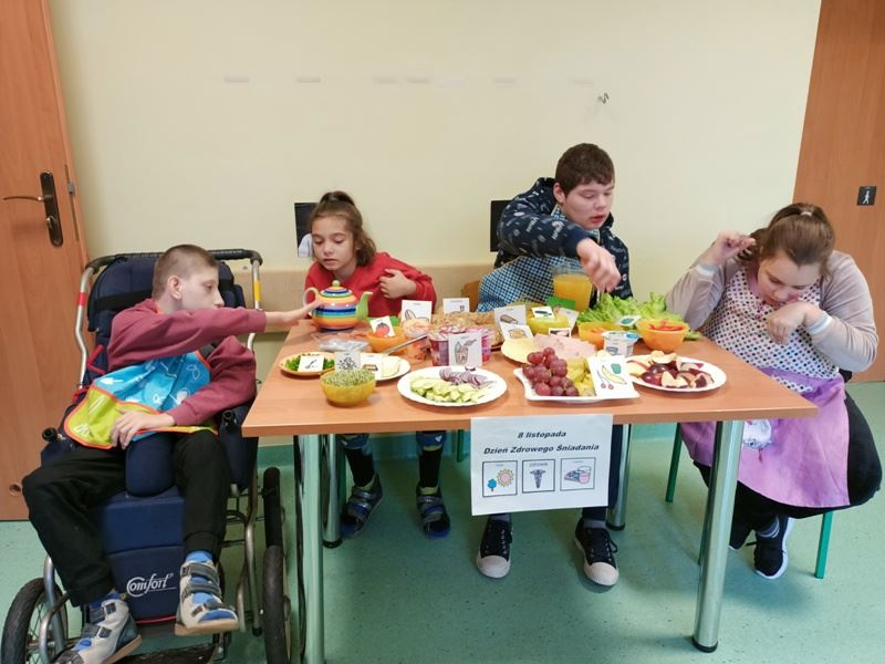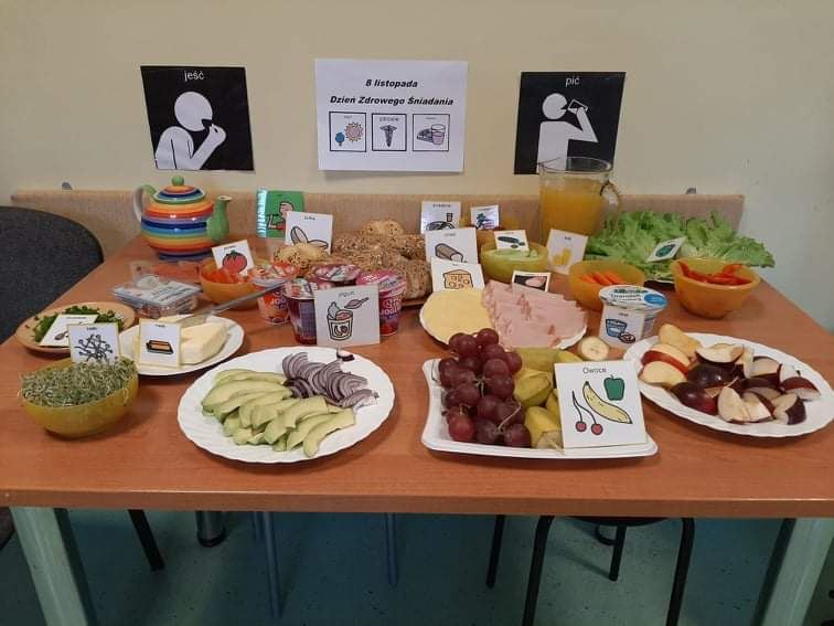 Zdrowy i smaczny początek dnia to gwarancja dobrego samopoczucia, więc warto rozpocząć go od pożywnego posiłku. Kierując się tą zasadą uczniowie z oddziałów rewalidacyjno-wychowawczych w dniu 8 listopada przyłączyli się do obchodów Dnia Zdrowego Śniadania. Dla naszych uczniów był to dzień szczególny, ponieważ mieli możliwość przygotowania tego śniadania ze swoimi wychowawcami. Wszyscy zasiedli do wspólnego stołu, by móc skosztować pyszną śniadaniową ucztę – śniadanie, które miało dać wszystkim energię do pracy, zabawy i nauki.