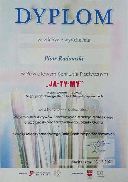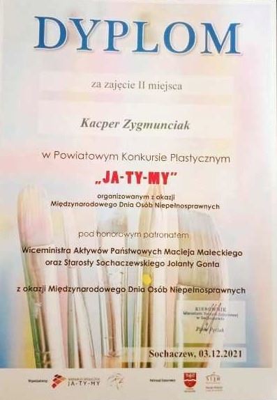 Nagrody w konkursie otrzymali uczniowie naszej szkoły: Kacper Zygmunciak zajął II miejsce w kategorii szkół ponadpodstawowych. Piotr Radomski otrzymał wyróżnienie za udział w konkursie.