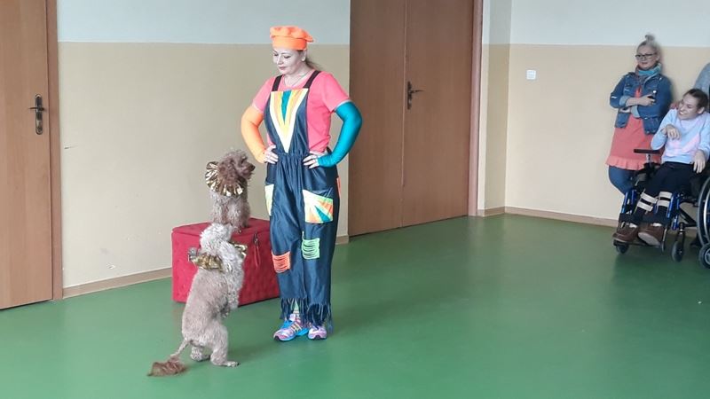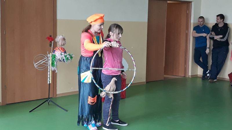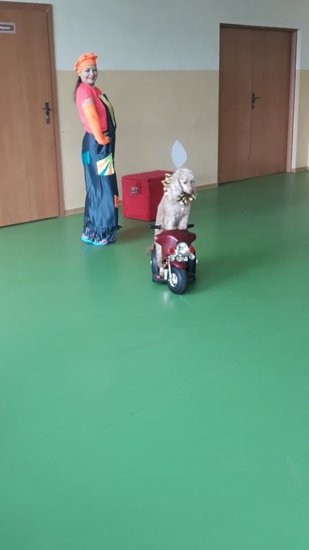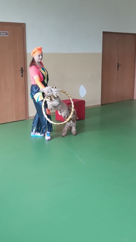 Nie brakowało również magicznych sztuczek, do udziału w których prowadzący zaprosili dzieci z klasy III Szkoły Podstawowej. Zaprezentowano także umiejętności zwierząt. I tak oto oczom uczniów ukazały się barwne gołębie, które wykonywały ewolucje na drabinkach i kołach oraz tresowane psy.