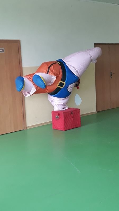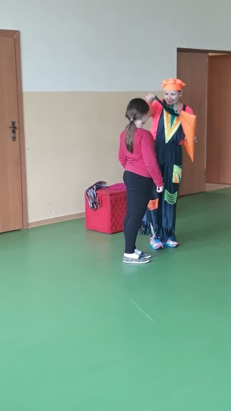 W czwartek 7 marca do szkoły przyjechał cyrk. Uczniowie ze wszystkich klas zapełnili widownię i oczekiwali na pokaz, który rozpoczął się od żonglerki kolorowymi obręczami.