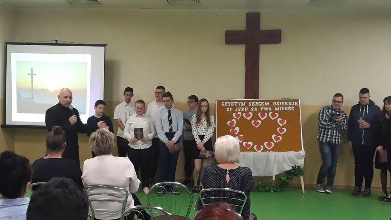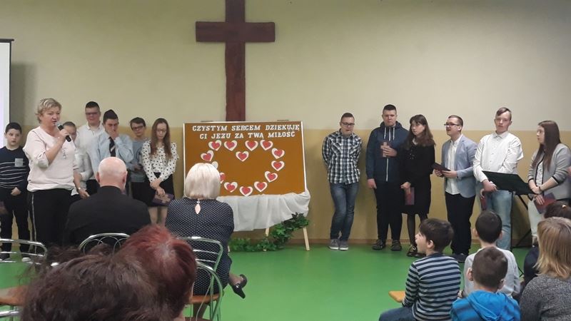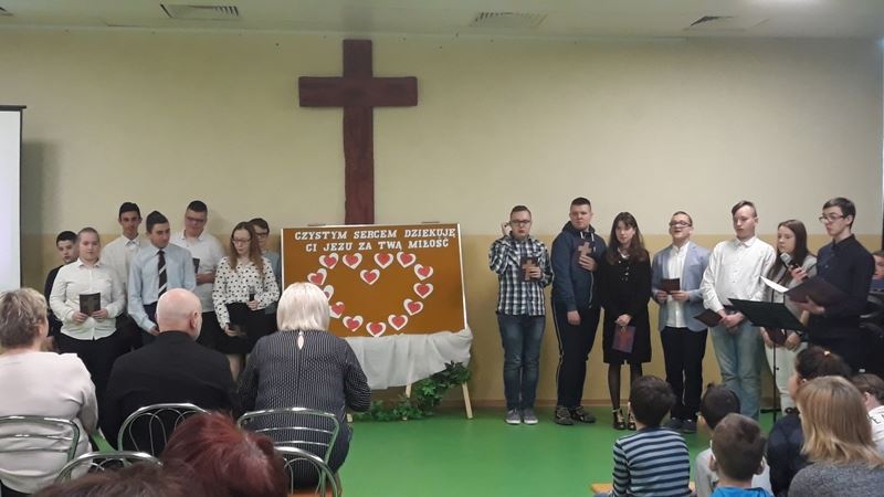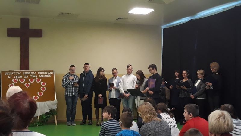 W dniach 10-12 kwietnia 2019 r. w naszej szkole przygotowaliśmy się w szczególny sposób do Świąt Wielkanocnych. Cała społeczność szkolna w pierwszym dniu uczestniczyła w inscenizacji słowno- muzycznej, która obrazowała mękę przez jaką przeszedł Pan Jezus. Montaż w wykonaniu uczniów oraz chóru nauczycielskiego pod opieką p. K. Ćwiklińskiej, p. K. Wojnowskiej oraz p. J. Boszko zawierał dużo pieśni. Już Św. Augustyn napisał, że „kto śpiewa, dwa razy się modli”. Czy można dobitniej i precyzyjniej dowartościować wagę muzyki i śpiewu.
