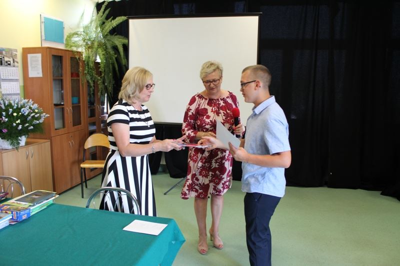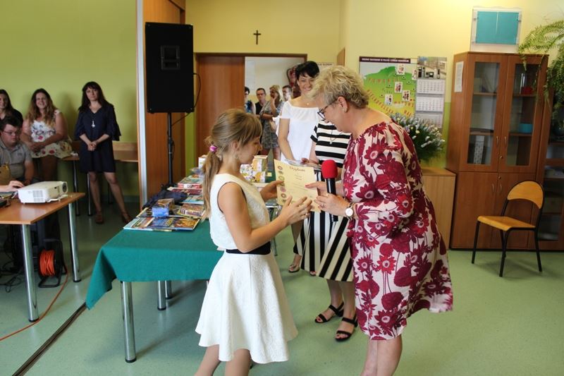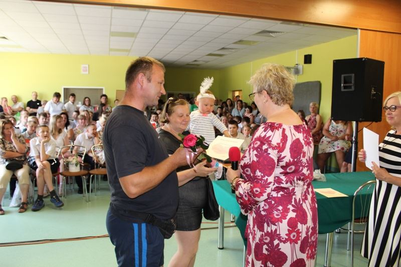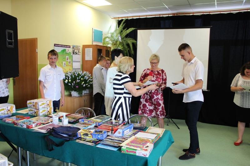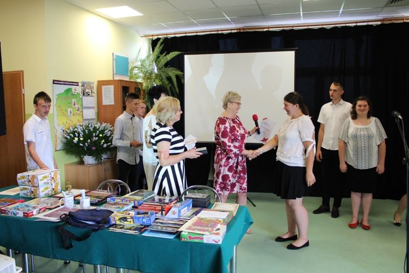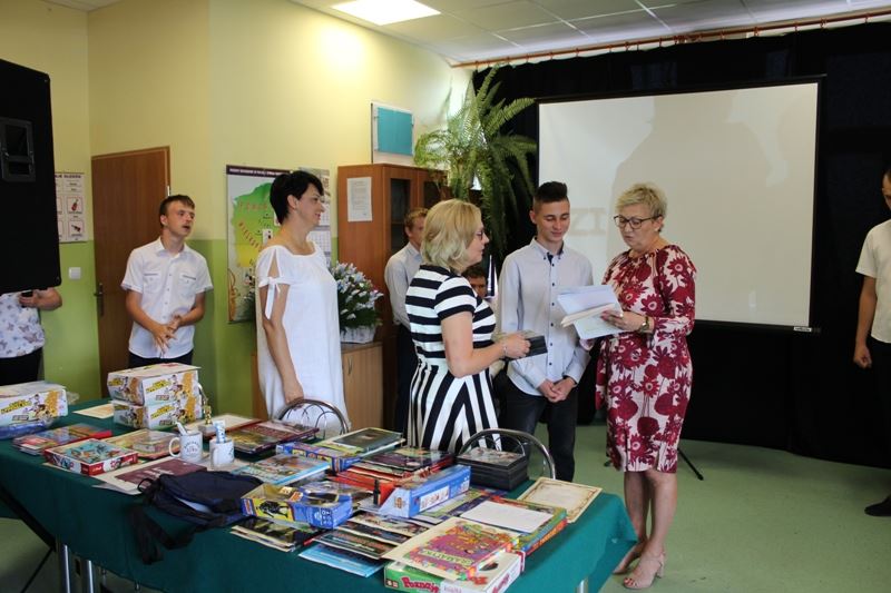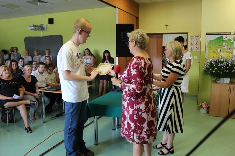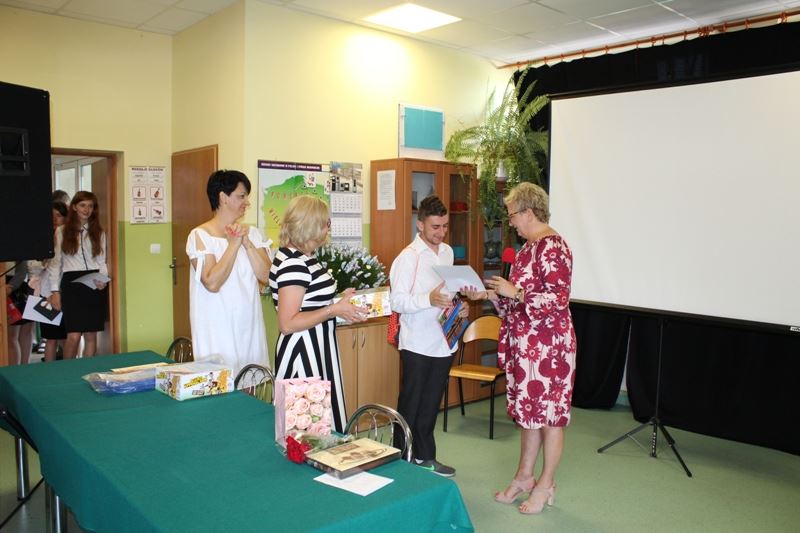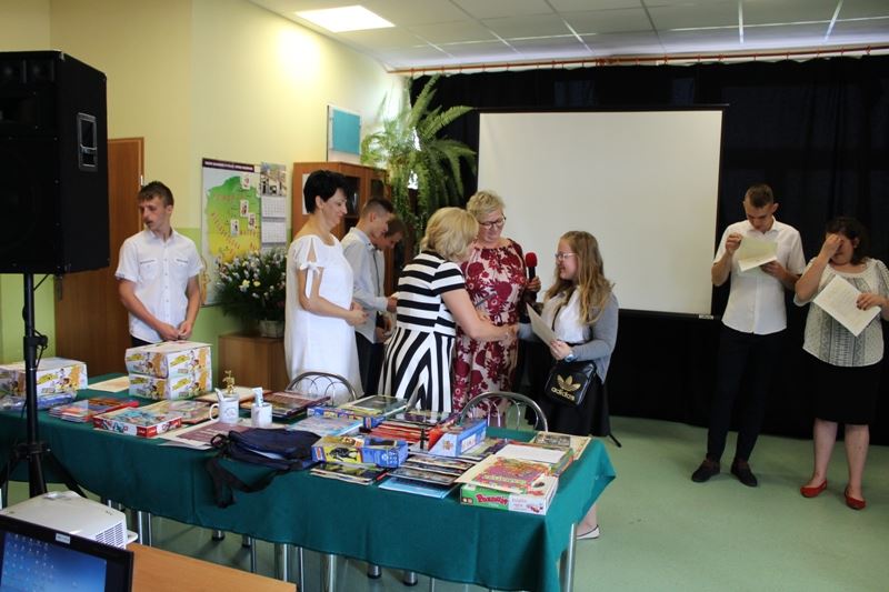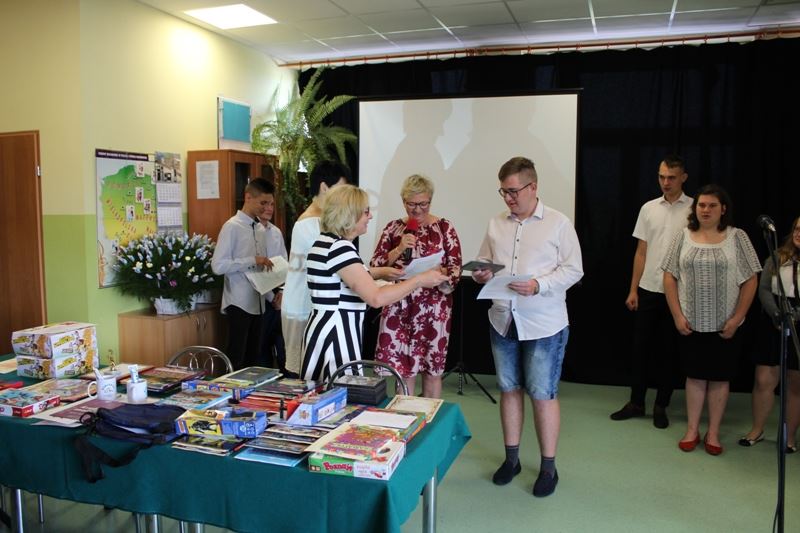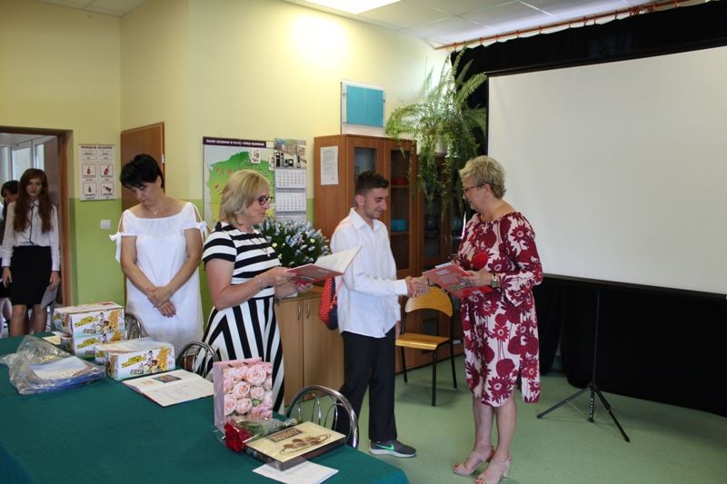 Na zakończenie wręczono dyplomy i nagrody za osiągnięcia w nauce i bardzo dobre zachowanie, osiągnięcia artystyczne, sportowe oraz za zaangażowanie w działalność kół zainteresowań i organizacji. Nagrody Starosty otrzymali: Marcin Mika i Weronika Jaskółka.