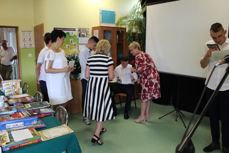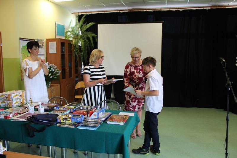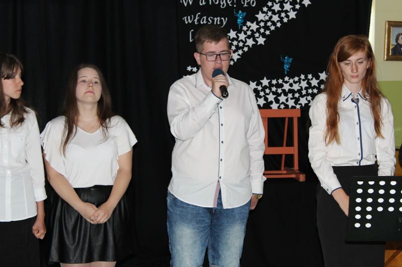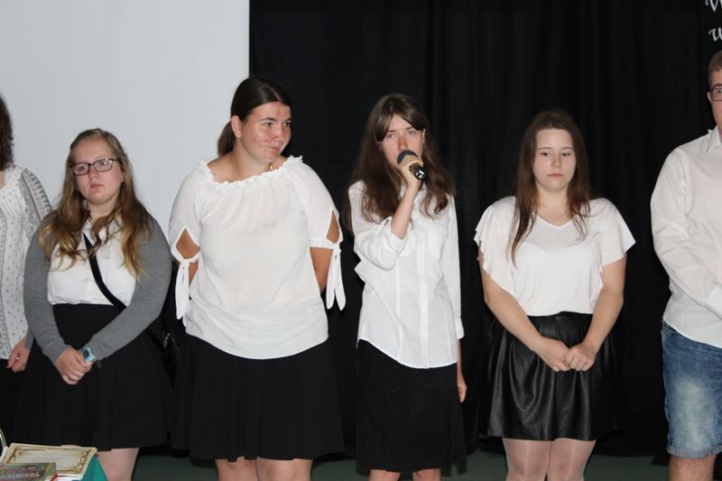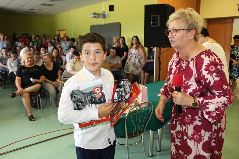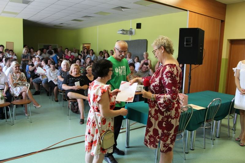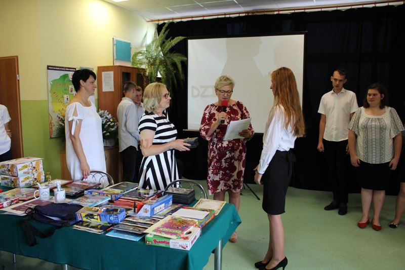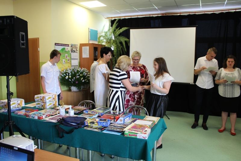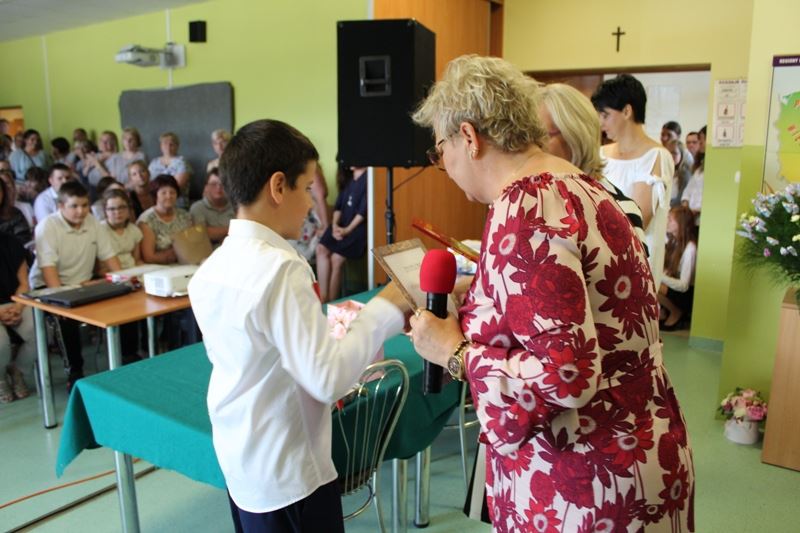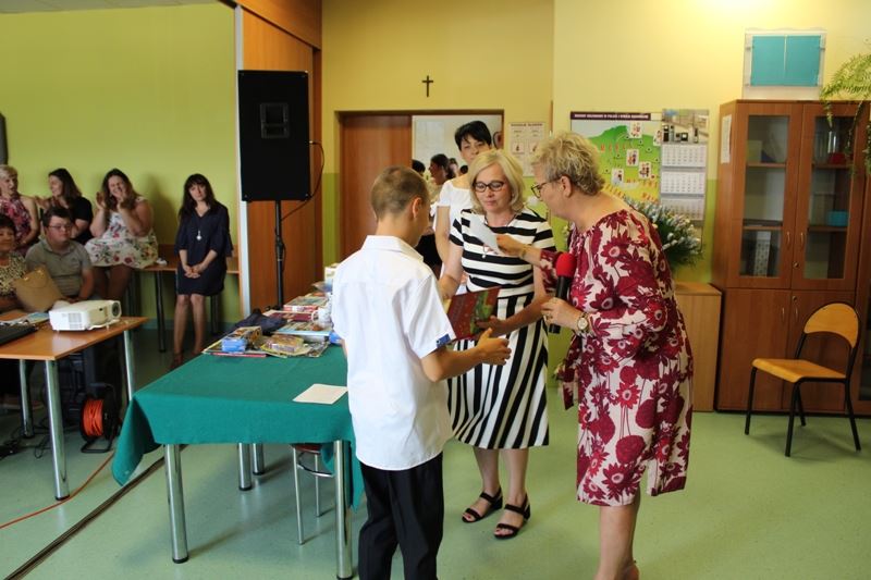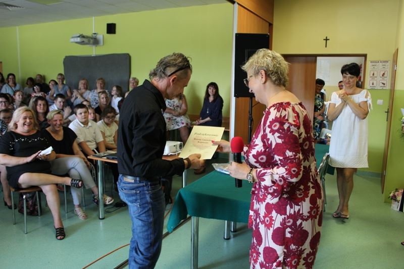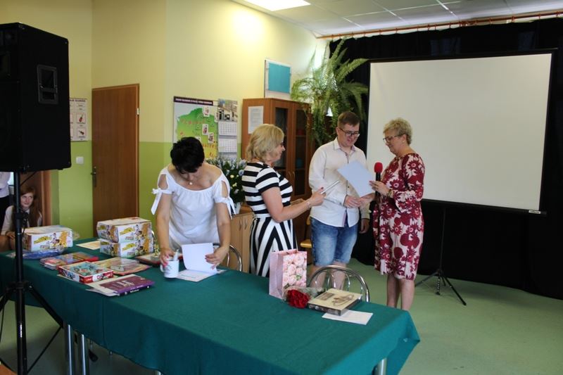 Na zakończenie wręczono dyplomy i nagrody za osiągnięcia w nauce i bardzo dobre zachowanie, osiągnięcia artystyczne, sportowe oraz za zaangażowanie w działalność kół zainteresowań i organizacji. Nagrody Starosty otrzymali: Marcin Mika i Weronika Jaskółka.