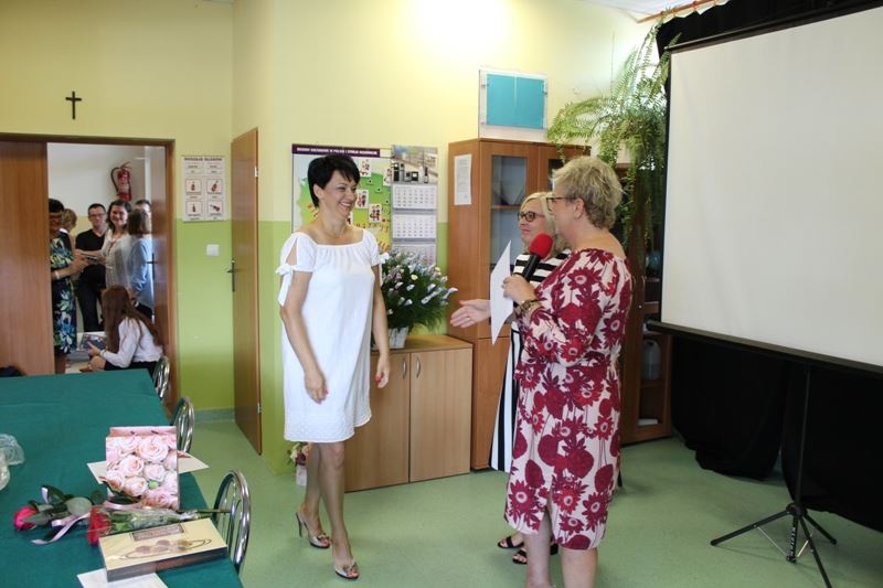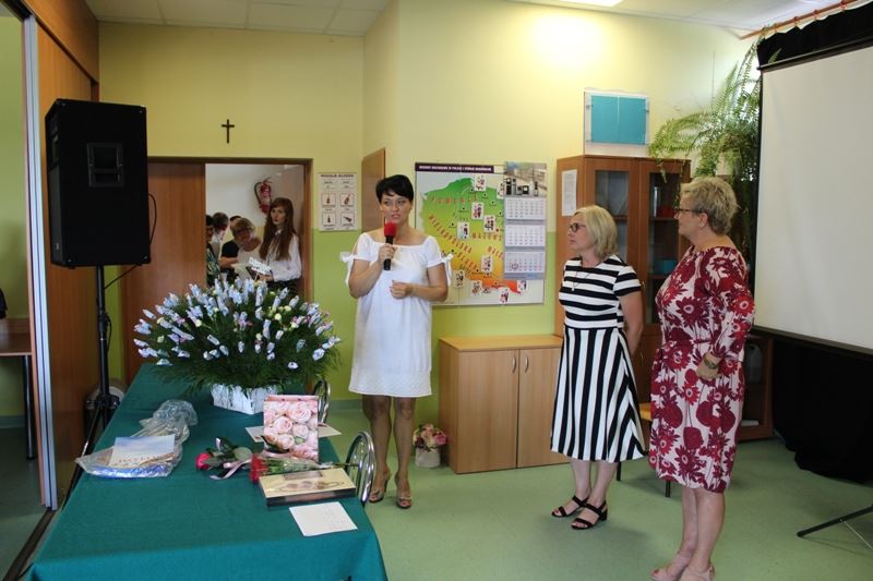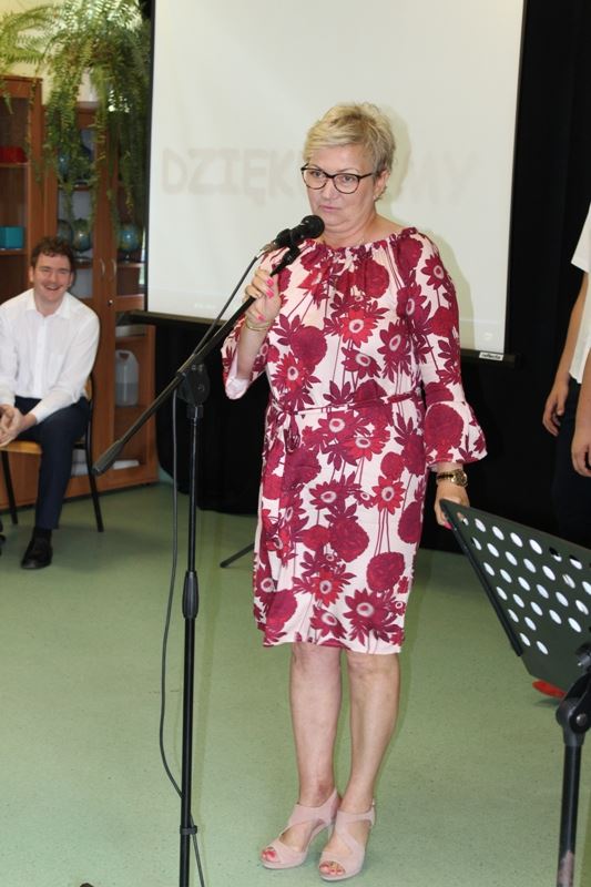 Po części artystycznej nastąpiły podziękowania. Za trud i serce włożone w wychowanie i edukację uczniów wyrażali swą wdzięczność przedstawiciele rodziców: Pani Monika Przybysz jako przedstawicielka absolwentów i Pani Wioletta Flakowska - w imieniu Rady Rodziców. Na ręce Pani Dyrektor Renaty Karaś i Pani Dyrektor Doroty Gonery zostały złożone kwiaty od wdzięcznych absolwentów.