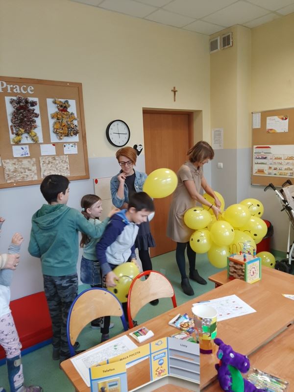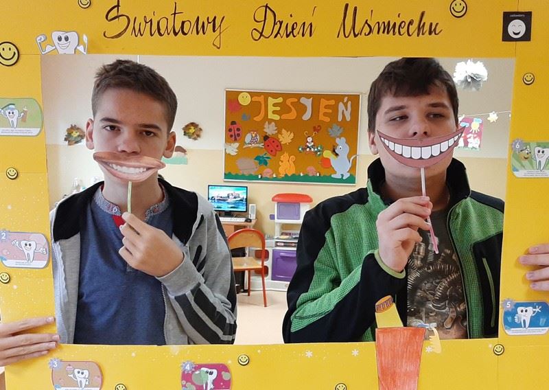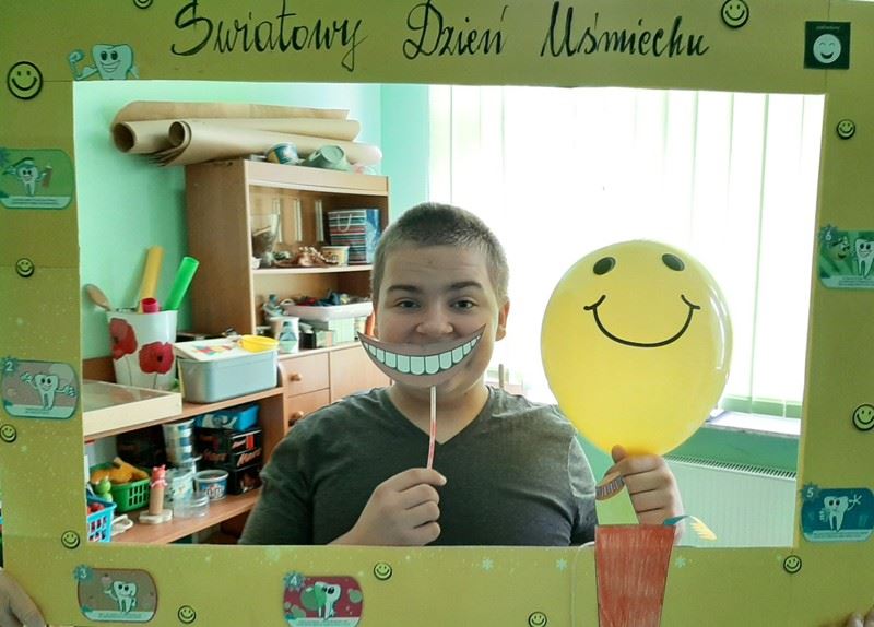 Członkowie koła prozdrowotnego rozdawali wszystkim uczniom żółte balony z symbolem uśmiechniętej buzi. Tego dnia można było sobie zrobić pamiątkowe zdjęcie w ramce specjalnie przygotowanej na tę okazję.