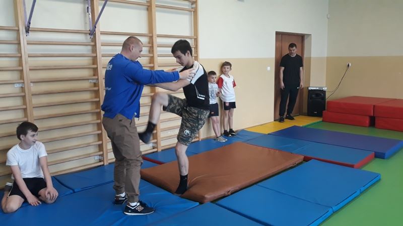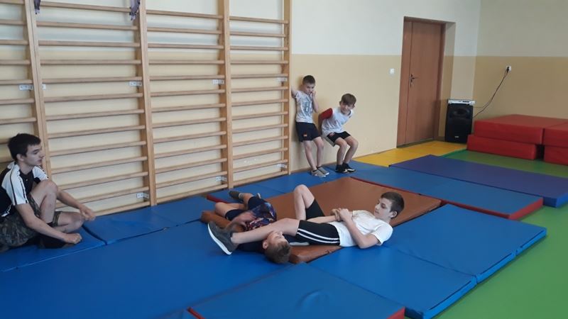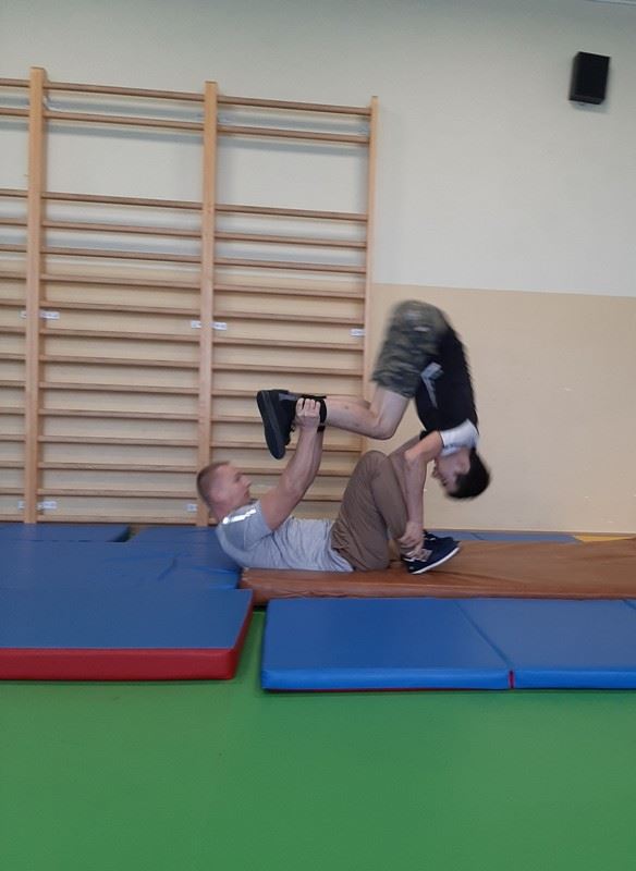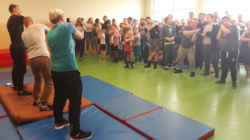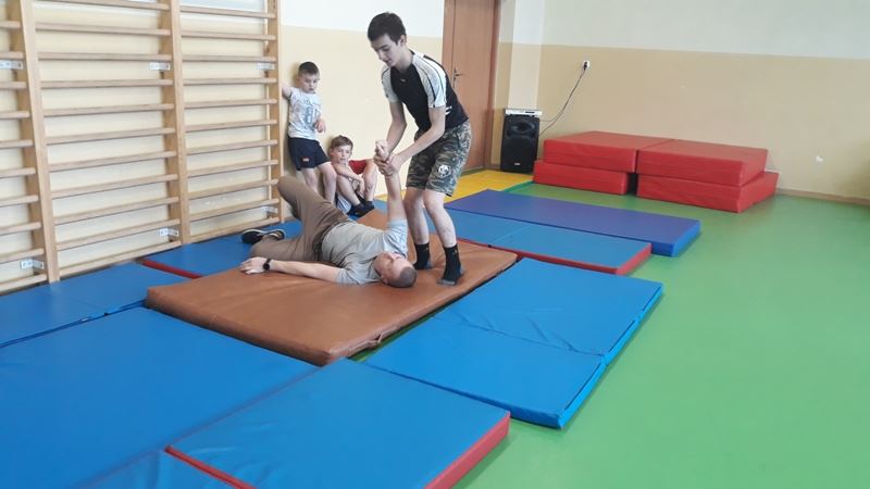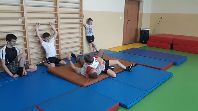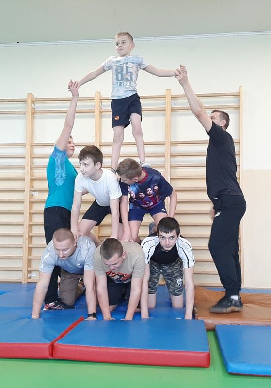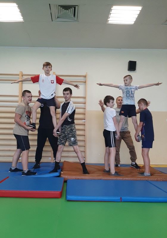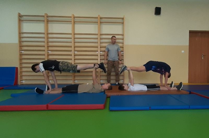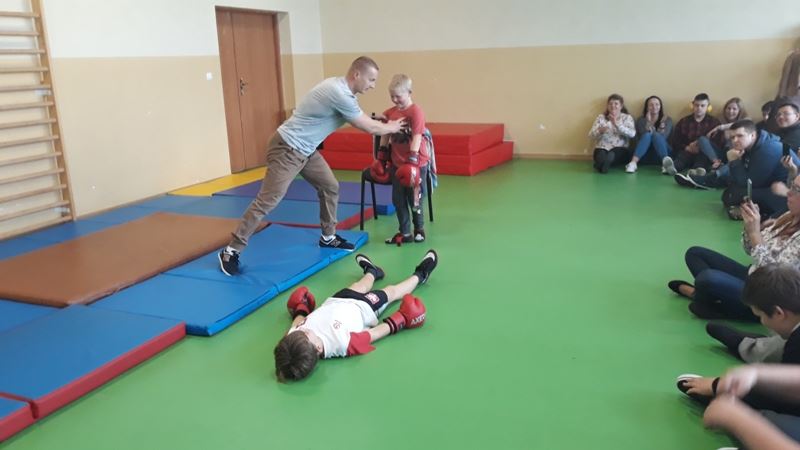 Chłopcy przygotowali pod kierunkiem nauczycieli wychowania fizycznego zestaw piramid gimnastycznych, występy akrobatyczno-gimnastyczne, wymyk i odmyk na drążku oraz pokaz padów i samoobrony. Na sam koniec pokazu publiczność została porwana do wspólnej zabawy w rytm piosenki „guli, guli, ram, zam, zam”.