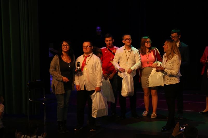 Gratulujemy również naszym uczniom udanego występu i zdobycia pamiątkowej statuetki podczas X edycji Festiwalu teatralno-muzycznego „Dajemy radość”. W tym roku Zespół Szkół Specjalnych w Erminowie reprezentowali (w kolejności alfabetycznej): Iza Chłystek (w podwójnej roli: Baba i Prząśniczka), Tomek Jażdżyk (Młodzieniec), Mateusz Klocek (w podwójnej roli: Śmierć oraz Młodzieniec z ubocza), Mateusz Marciniak (Młodzieniec z wiciną), Kasia Orlikowska (wiarołomna Prząśniczka) oraz Bartek Rutkowski (wystąpił w roli Dziada, a także zaśpiewał pieśń Moniuszki „Prząśniczka”). Raz jeszcze gratulujemy i życzymy dalszych sukcesów artystycznych!