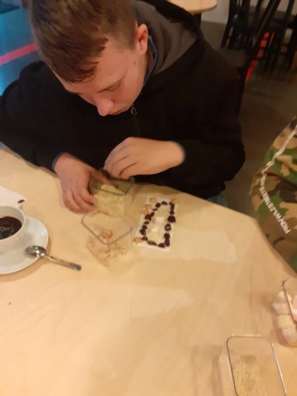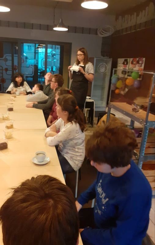 Niesamowitych wartości smakowych doznaliśmy w czasie degustacji czekolady płynnej. Każdy uczestnik miał możliwość wykonania i udekorowania oraz zapakowania własnej czekolady. Uważamy, że wycieczka do Manufaktury była bardzo trafnym i udanym wyborem. Duże wrażenie wywarł na nas sam proces powstania gotowej tabliczki czekolady.