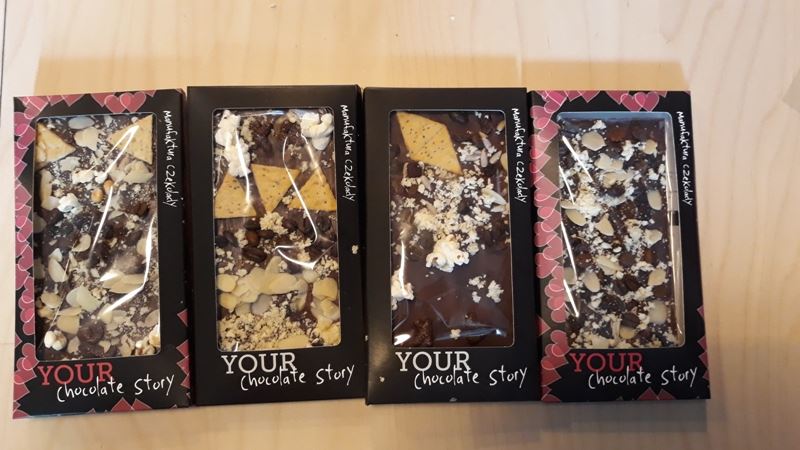 Każdy uczestnik miał możliwość stworzenia własnej tabliczki czekolady z dodatkiem wybranych liofilizowanych owoców i bakalii. Ponadto mieli także możliwość skosztowania gorącej czekolady oraz degustowania ziarna kakaowca.