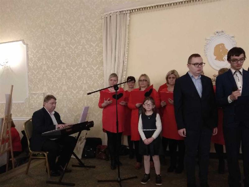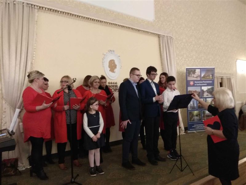 Wśród licznego grona wystawców swoje miejsce znalazło stoisko Zespołu Szkół Specjalnych w Erminowie z rękodziełem artystycznym autorstwa naszych uczniów. Można było tam zakupić świąteczne stroiki, bombki, dekoracyjne choinki, wyroby ceramiczne i „różne różności” bożonarodzeniowe. Podczas kiermaszu prezentowaliśmy również swoją twórczość muzyczną: nasi uczniowie wraz z chórkiem nauczycieli zaśpiewali dla wszystkich obecnych składankę kolęd i pastorałek. Każdy dzień coraz bardziej przybliża nas do Bożego Narodzenia.