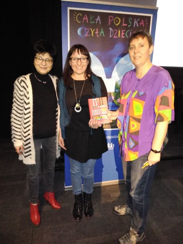 Cieszymy się z tego, że mieliśmy okazję osobiście podziękować pani Izabeli Sarnocińskiej, organizatorce spotkania, a nawet samej Irenie Koźmińskiej, założycielce Fundacji oraz autorce ważnych książek, dotyczących wychowania do wartości poprzez czytanie dzieciom (Również dostępne w naszej bibliotece!), z którą mieliśmy okazję dłużej porozmawiać.