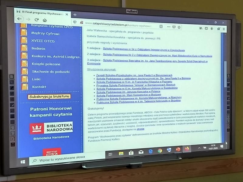 - Udzielenie przez naszych uczniów i nauczycielki wywiadu do kamery na potrzeby ogólnopolskiej kampanii przygotowywanej przez Fundację ABCXXI Cała Polska czyta dzieciom – gościliśmy ich ekipę w naszej szkole 10 stycznia,