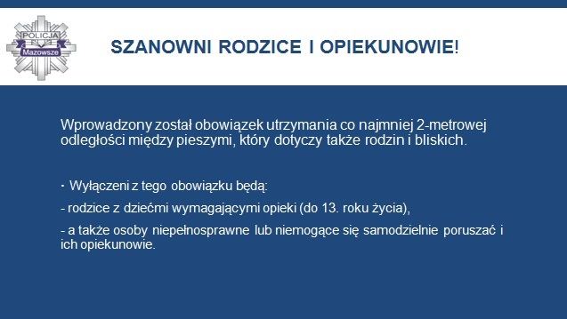 Wprowadzony został obowiązek utrzymania co najmniej 2-metrowej odległości między pieszymi, który dotyczy także rodzin i bliskich.