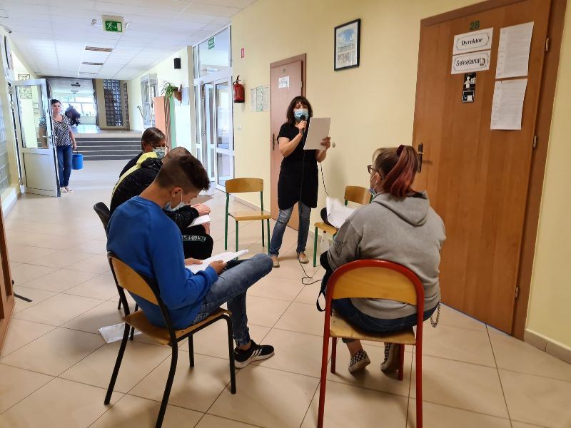 Nasza szkolna akcja rozpoczęła się już w tygodniu poprzedzającym wyznaczony termin. Wtedy ochotnicy otrzymali teksty utworu do czytania i zostały przyznane role, tak aby w sobotę piątego września lektorzy mogli przygotowywać się do występu przed szkolną publicznością, czytając głośno we własnych domach rodzinnych. W środę przeprowadziliśmy słuchowisko. Czytanie odbywało się na korytarzu szkolnym. Każdy lektor był w maseczce ochronnej, ze świeżo zdezynfekowanymi rękami. Wszystkie klasy we własnych salach słuchały czytania za pośrednictwem szkolnego radiowęzła. Teraz wszyscy uczniowie mają jeszcze tydzień, aby przygotować prace na ogłoszony w szkole konkurs plastyczny – ilustracje do „Balladyny”.